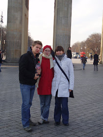 Með Błażej og Martynu við Brandenborgarhliðið í Berlín